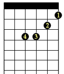 The guitar comes in on the second beat of the second mensurate and is a Bb pocket-size chord played with single upwardly stokes on every other beat out.